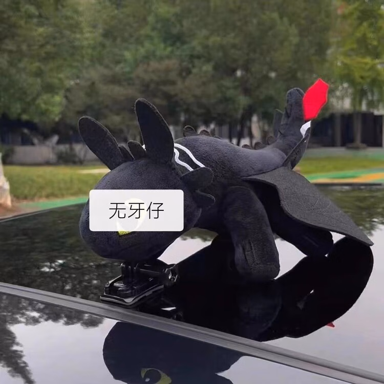 无牙仔头盔翅膀飞龙车顶装饰玩偶车外公仔天窗可拆卸