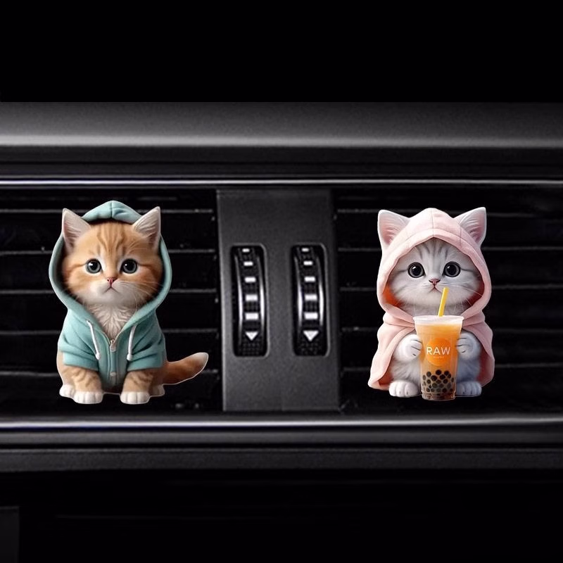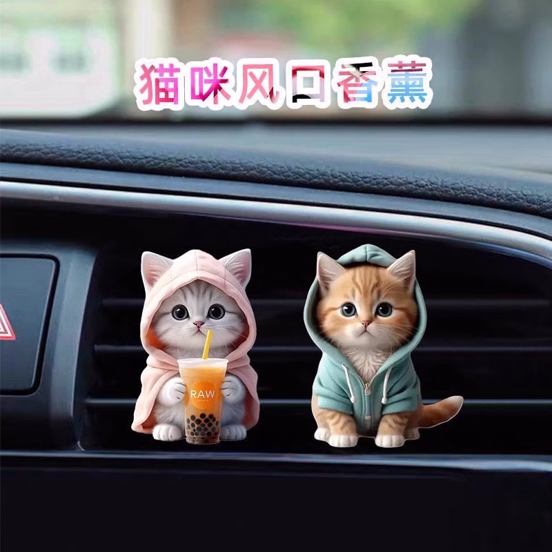 宿礼可爱猫咪汽车香薰出风香水夹亚克力小猫车载装饰品车内饰品摆件