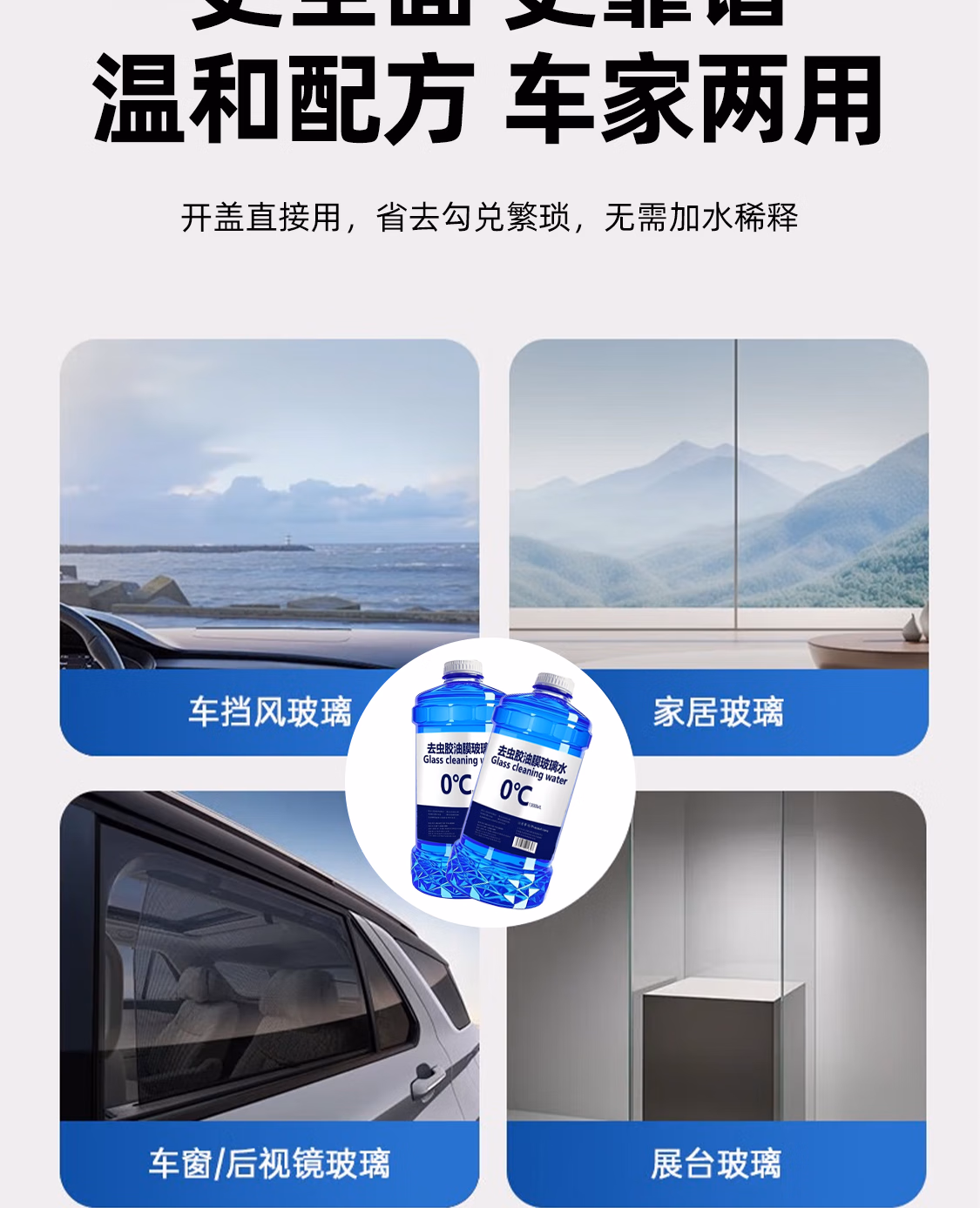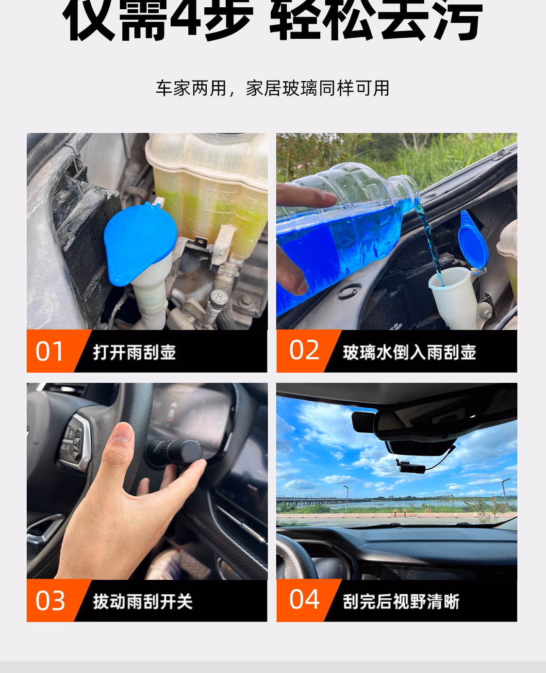 轩之梦去污渍玻璃水强力清洁去油膜虫胶夏季防雨整箱四季汽车雨刮水 0度以上可用/4桶装5200ml 强去污