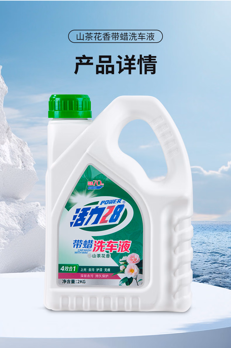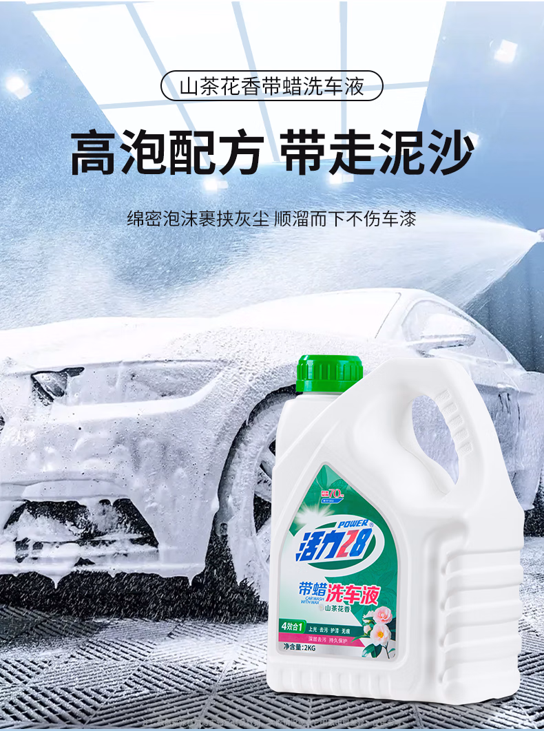 活力28山茶花香高泡沫洗车液2KG水蜡汽车去污打蜡清洁泡沫清洗剂 山茶花香 2kg 1桶收藏
