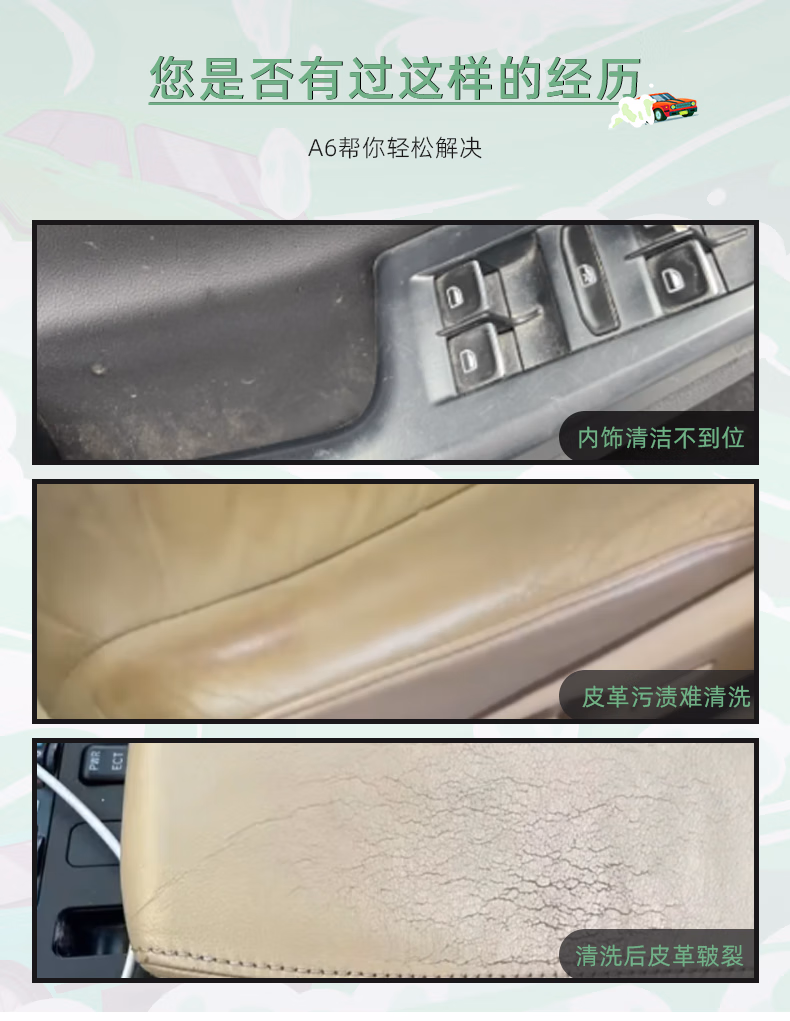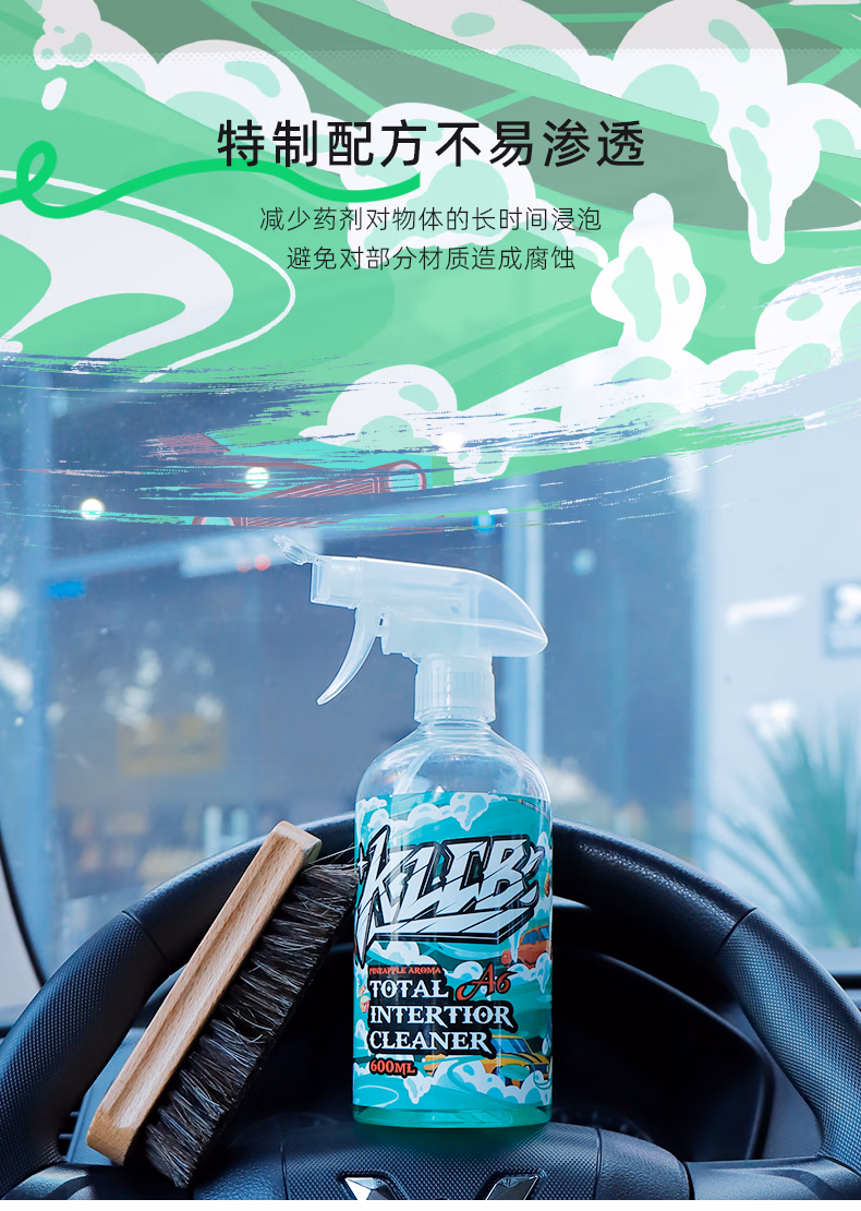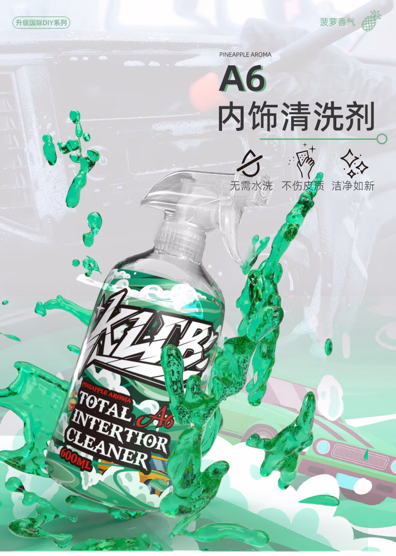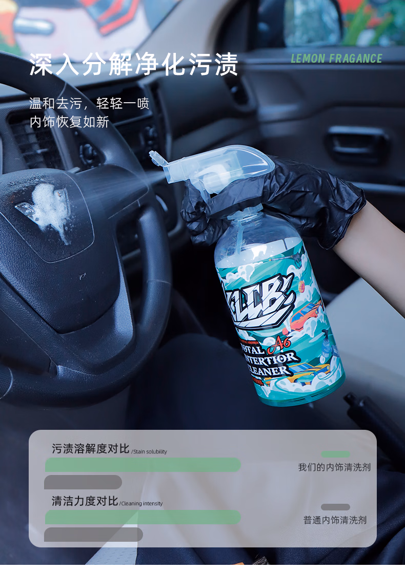 KLCB苛力A6汽车内饰清洗剂中性强力去污神器顶棚皮革布艺多功能泡沫清洁剂 A6内饰清洗剂 600ml 1瓶
