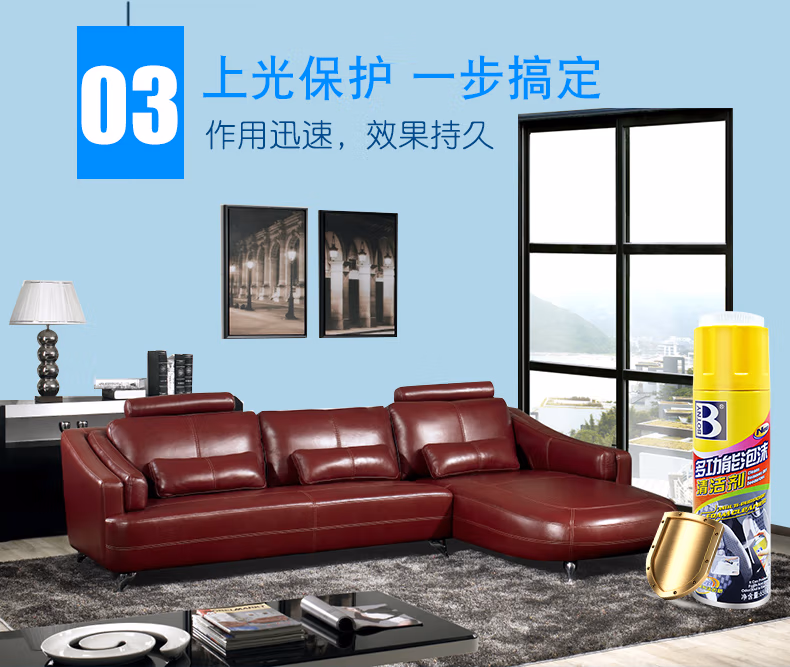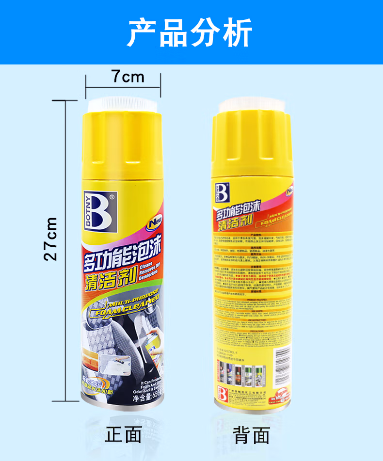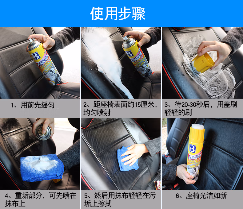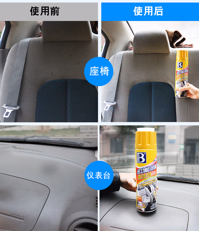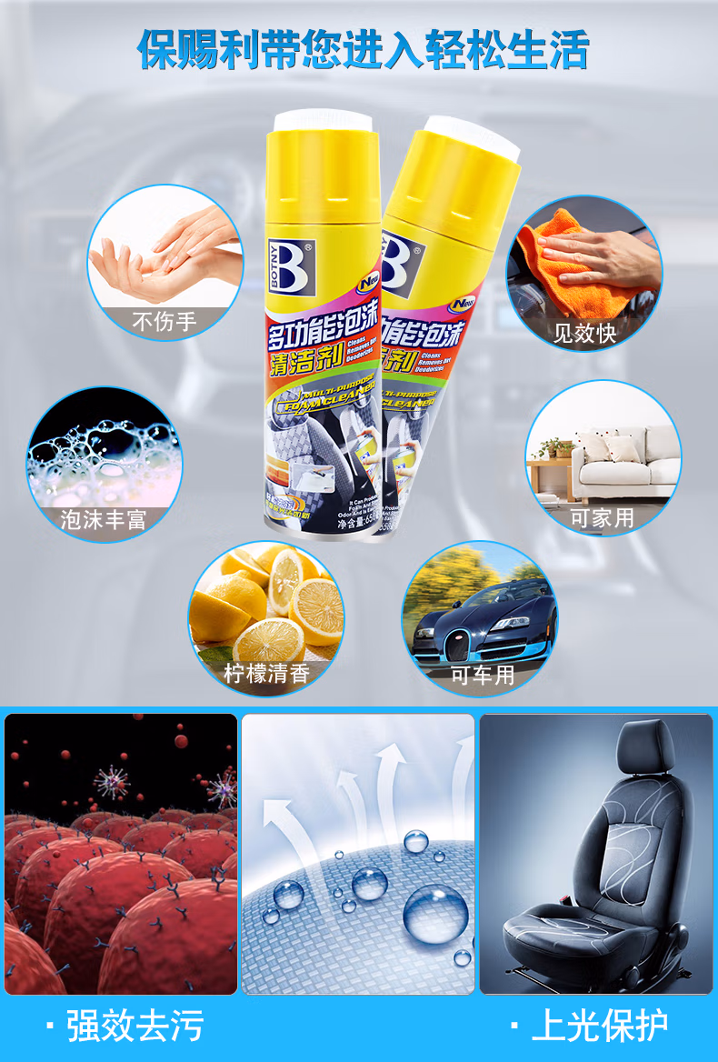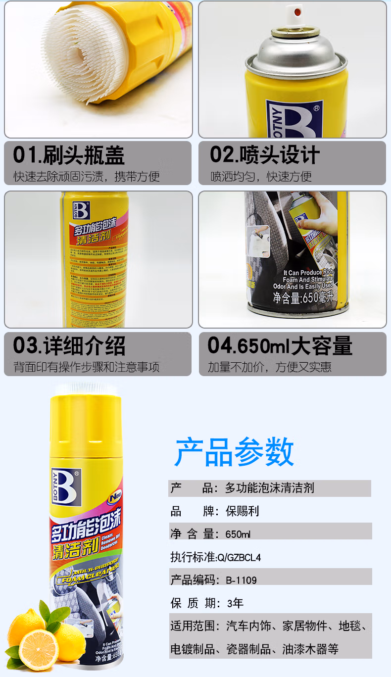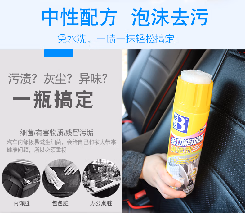保赐利 多功能泡沫清洗剂 汽车内饰顶棚 皮革包包沙发真皮座椅清洁剂免水洗去污清洗剂洗车液带刷头 650ML带刷款